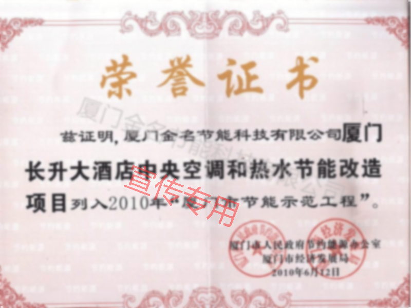 長升大酒店-廈門市節(jié)能示范工程(2010年)